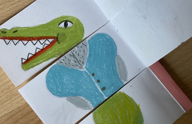 We will create a book of interactive characters in the workshop. We will then be able to swap different parts between the characters that we have drawn.