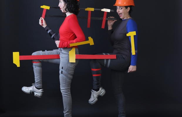 The entire show takes place on the bodies of the actresses, combining objects, sounds, whistles and puppets.