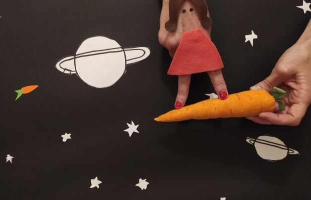 היא מסרבת לאכול עד שרותם משתמשת במשחקי דמיון. כך, למשל גזרים הם מקלות מלוחים מכוכב צדק, האפונה היא גשם של עולם ירוק והפירה הוא ענני אדים של הר געש באיסלנד. והעגבניה?