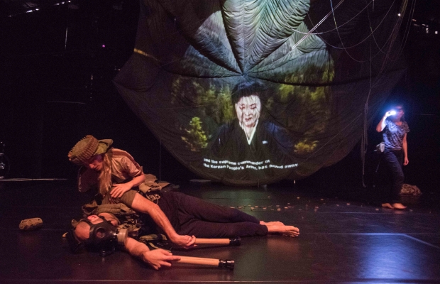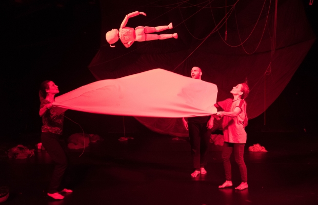 מופע רב תחומי, תנועתי המשלב חפצים, וידאו ובובה.