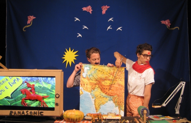 A journey to India in which we’ll learn how to deal with a hungry tiger in the woods, when it might be advisable to hide in a pumpkin and how a pancake can save your life. Bollywood style puppet and object theater with live animation and Indian cuisine with four hands.