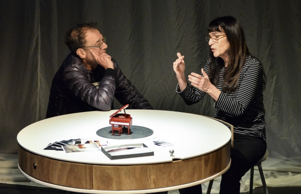 A round dining table, projected images, and stand-up skits split the stage into different channels that try to merge through the conversations unfolding around the table, including stories—some of which cannot be taken seriously, and some of which are forbidden to be told.
