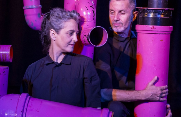 תיאטרון אקטואלי ושופע הומור, המייצר מפגש חזותי בין אובייקטים מודולריים, תנועה וטקסט.