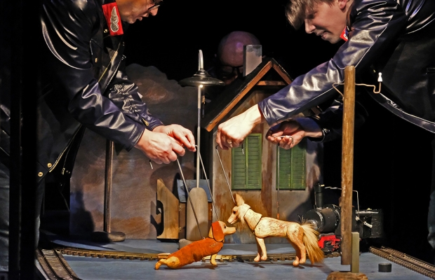 תיאטרון בובות קסום, עם רכבת קטנה שיוצאת למסע מיניאטורי ודמיוני באולם התיאטרון.