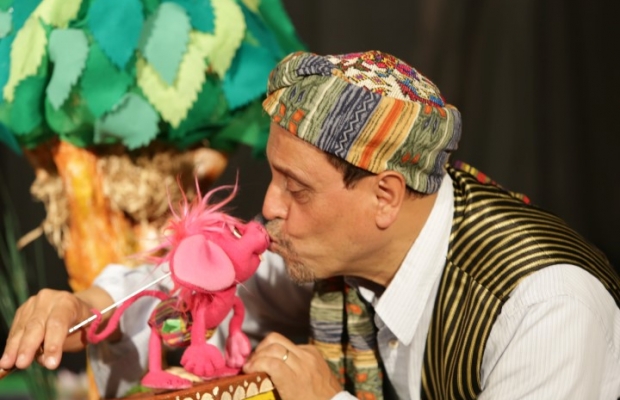 תיאטרון בובות על במה מסתובבת, שירים והפתעות.
