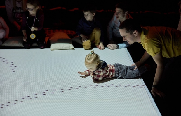 תיאטרון מחול אינטראקטיבי עם הקרנות וידאו.
